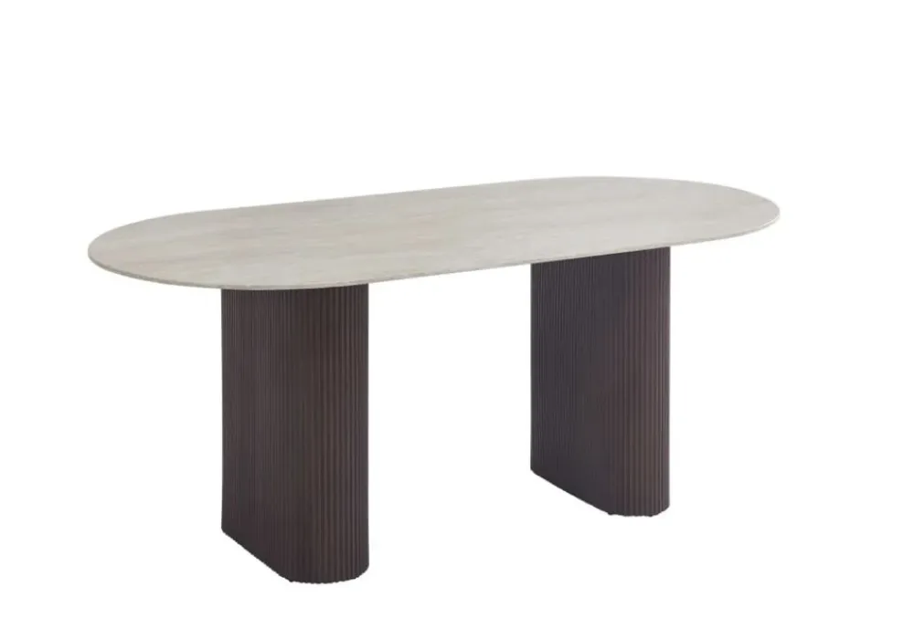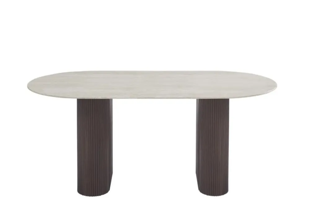 TABLE A MANGER ROXY PIED METAL EFFET NOYER CERAMIQUE TRAVERTIN MAT